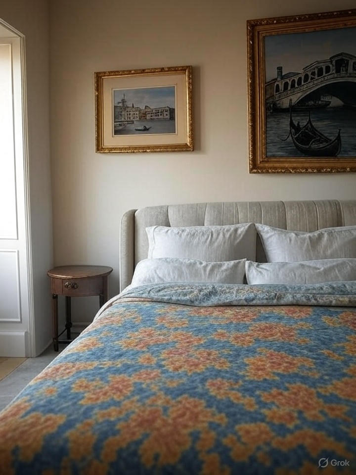 This tranquil abstract painting evokes the calm beauty of Venice's canals at dawn. Soft blues and pastel pinks swirl in gentle waves, while fragmented geometric shapes suggest the city's labyrinth of bridges and narrow streets, inviting the viewer into a quiet moment of reflection.